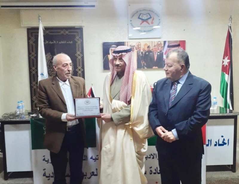 وفي ختام الندوة التي حضرها نخبة من الأدباء والمثقفين الأردنيين، قدم رئيس اتحاد الكتاب والأدباء الأردنيين محمود سالم رحال للسفير السديري عضوية شرفية في الاتحاد.