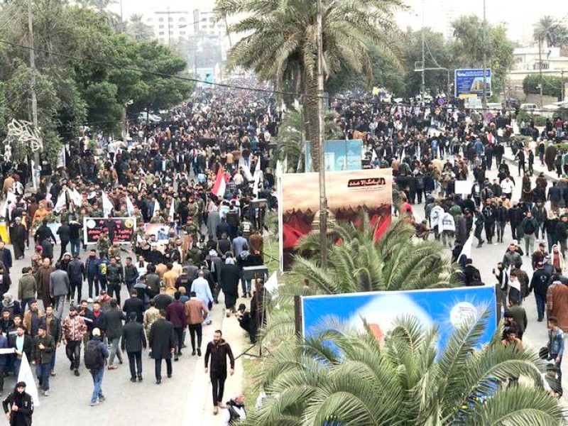 وأغلقت قوات الأمن أمس، جسر الطابقين الحيوي وسط بغداد بعد الإعلان عن مسيرة لإحياء ذكرى مقتل سليماني والمهندس. وكشفت وثيقة أمنية للاستخبارات العراقية وجود مخطط لمليشيات موالية لإيران لاستهداف السفارة الأمريكية بصواريخ انتقاماً لمقتل قائد فيلق القدس ونائب رئيس هيئة الحشد الشعبي، وأوصت بتكثيف الجهود الأمنية في بغداد وإجراء عمليات تفتيش دقيقة في منطقة شارع فلسطين شرق العاصمة.