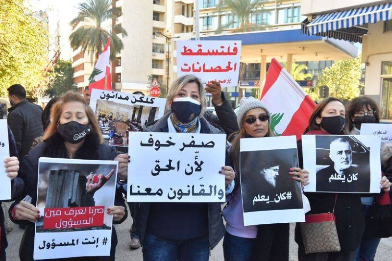 وندد المشاركون بتمييع ملف التحقيق والتلاعب على القانون وقمع القاضي العدلي طارق بيطار، مطالبين بدعمه حتى يكشف الحقائق ويعاقب المجرمين.
