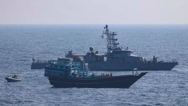 وأفاد الأسطول الخامس الأمريكي بأن مدمّرة صواريخ موجّهة أمريكية وسفينة دورية اعترضتا سفينة لا ترفع علم أي دولة وتمر عبر إيران، على الطريق المستخدم في السابق لنقل الأسلحة إلى الحوثيين في اليمن.