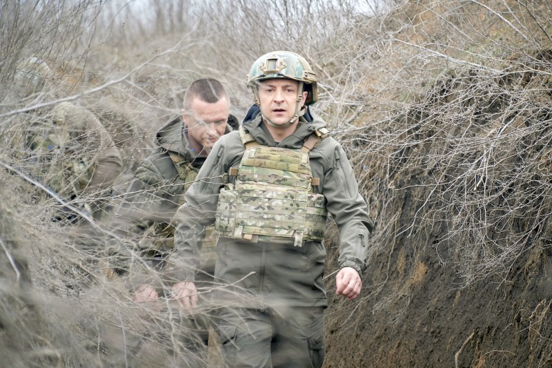 رئيس أوكرانيا فلاديمير زيلينسكي في زيارة سابقة لقوات بلاده على الحدود مع روسيا.