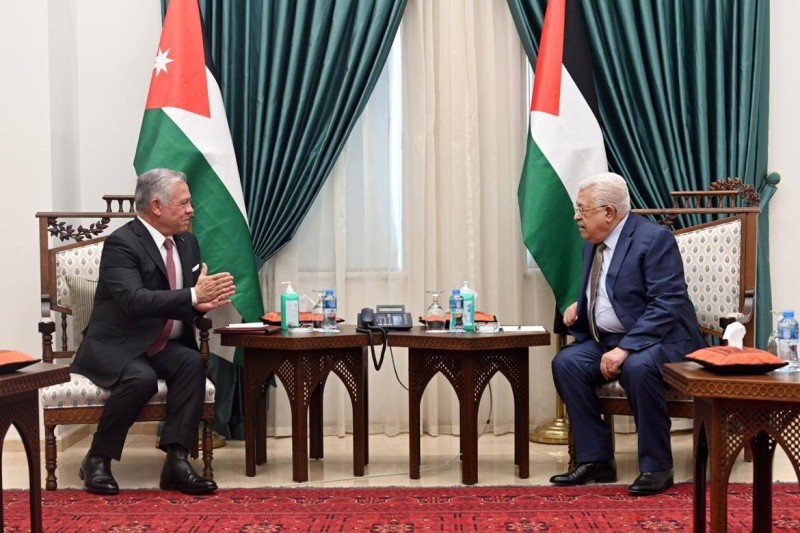 وقال الملك الأردني مخاطباً الفلسطينيين في لقاء عقده مع الرئيس الفلسطيني محمود عباس في رام الله بالضفة الغربية المحتلة اليوم: «نقف معكم باستمرار، رغم كل التحديات، وسيبقى موقفنا دائما مع فلسطين»، مضيفاً: «لا يمكن للمنطقة أن تنعم بالأمن والاستقرار من دون حل عادل وشامل للقضية الفلسطينية على أساس حل دولتين، يضمن قيام الدولة الفلسطينية المستقلة على حدود 67 وعاصمتها القدس الشرقية».