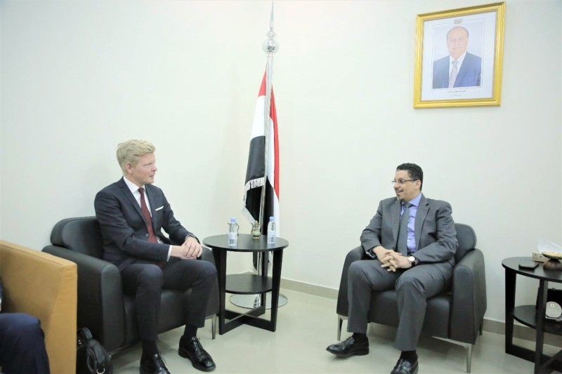 وزير الخارجية اليمني أثناء لقائه المبعوث الأممي.