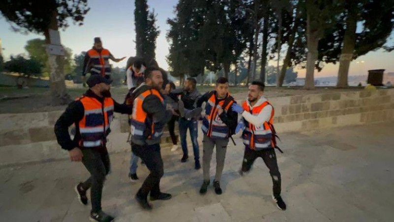 واقتحمت قوات إسرائيلية كبيرة باحات المسجد عقب صلاة الفجر، وأطلقت وابلاً من قنابل الصوت والغاز المسيل للدموع والأعيرة النارية المغلفة بالمطاط تجاه المصلين.