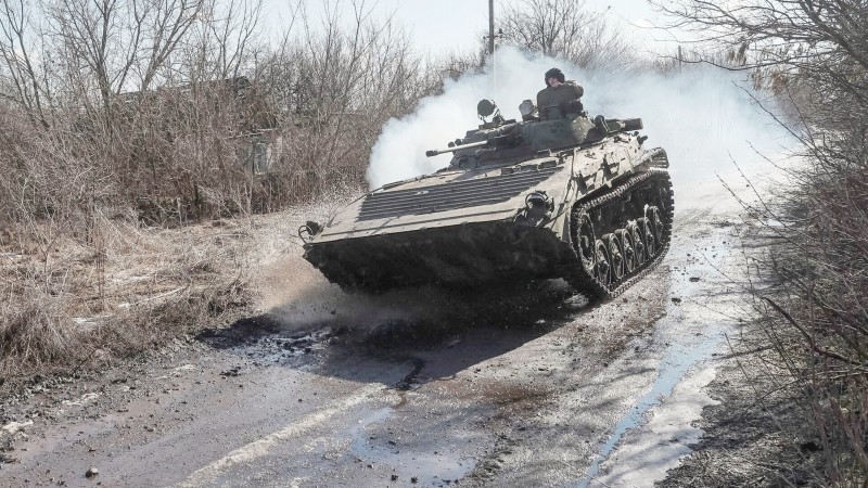 قوات روسية في منطقة دونباس حيث تكثف موسكو هجماتها.