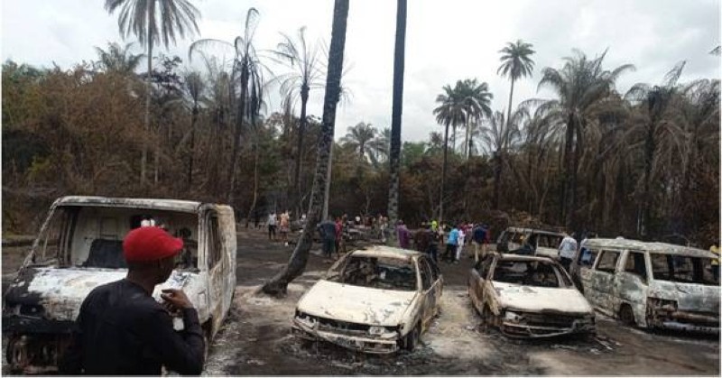 وقال مفوض الدولة للموارد البترولية جودلاك أوبيا: «شب الحريق في موقع تموين غير قانوني وأثر على أكثر من 100 شخص احترقوا، ما تعذر معه التعرف عليهم».