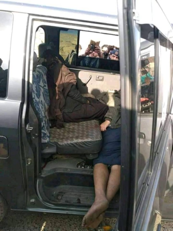 القتيلان شقيق القيادي الحوثي المجرم ووالدته داخل السيارة.