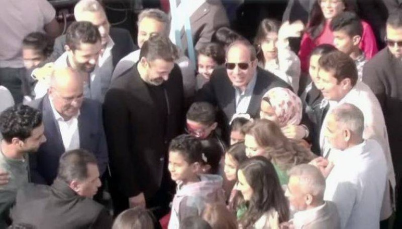 السيسي محاطا بأبطال مسلسل «الاختيار3» خلال الاحتفال بعيد الفطر.