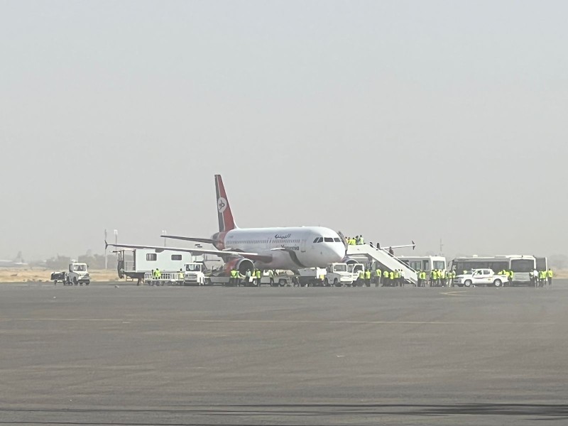 أول رحلة إنسانية من مطار صنعاء إلى الأردن.