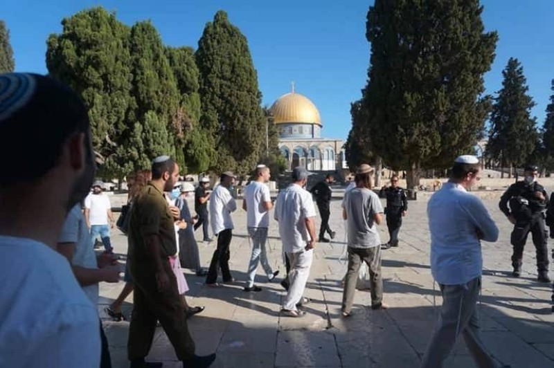 اقتحم مستوطنون يهود اليوم (الأربعاء) المسجد المبارك على شكل مجموعات من باب المغاربة تحت حماية شرطة الاحتلال، في استفزاز واضح للمقدسيين الذين أطلقوا دعوات للاعتكاف بالمسجد الجمعة القادمة.
