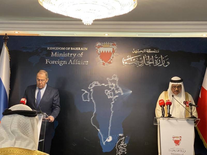 وتصدرت الحرب الروسية - الأوكرانية وقضايا إقليمية أخرى مباحثات لافروف في البحرين. وقال وزير الخارجية البحريني إن الجانبين بحثا الأوضاع السياسية والأمنية الإقليمية والدولية، وآخر تطورات الأوضاع في منطقة الشرق المتوسط، ومستجدات الوضع في أوكرانيا.