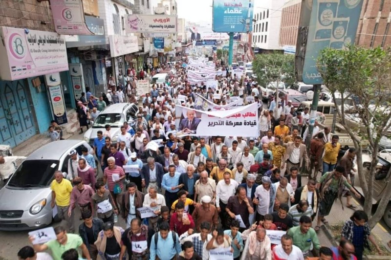 ودعا المتظاهرون رئيس مجلس القيادة الرئاسي الدكتور رشاد العليمي ونوابه إلى رفض الهدنة الظالمة التي تحولت إلى غطاء لممارسات مليشيا الحوثي الإجرامية ضد الأطفال والنساء والمدنيين.