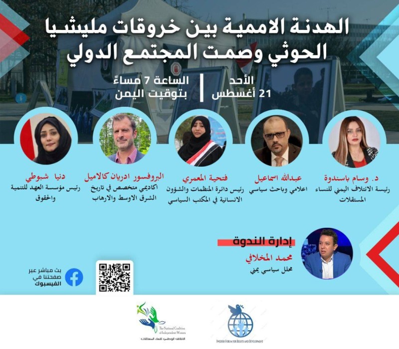 وفي ختام الندوة، أشارت رئيسة الائتلاف اليمني للنساء المستقلات الدكتورة وسام باسندوة أن المجتمع الدولي بات يدرك خطورة مليشيا الحوثي وتهديداتها للأمن والسلم الدوليين، موضحة أنها خلال اللقاءات التي عقدتها مع البرلمانيين الأوروبيين وأعضاء الكونغرس الأمريكي ومسؤولين في وزارة الخارجية الامريكية تبين أنهم على قناعة تامة بخطورة مليشيا الحوثي الإرهابية وأن تصنيف هذه الجماعة في قوائم الإرهاب العالمي أصبح أمراً لا بد منه نظراً لعلاقتها مع الحرس الثوري الإيراني وحزب الله اللبناني المصنفين كمنظمات إرهابية.