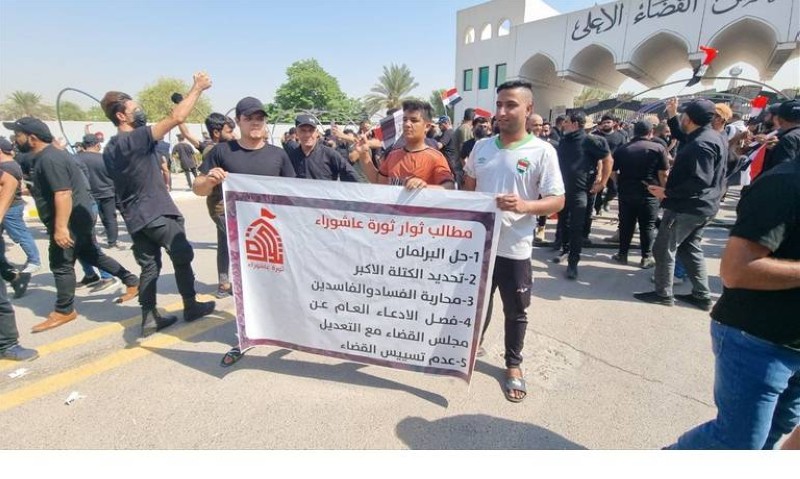 تمددت احتجاجات أنصار التيار الصدري في العراق لتطال مقر مجلس القضاء الأعلى بالمنطقة الخضراء في بغداد، إذ نصبوا خياماً بهدف الاعتصام أمام المبنى رافعين لافتات حملت 5 مطالب، وهي: «حل البرلمان، تحديد الكتلة الأكبر، محاربة الفساد والفاسدين، فصل الادعاء العام عن مجلس القضاء مع التعديل، وعدم تسيس القضاء».