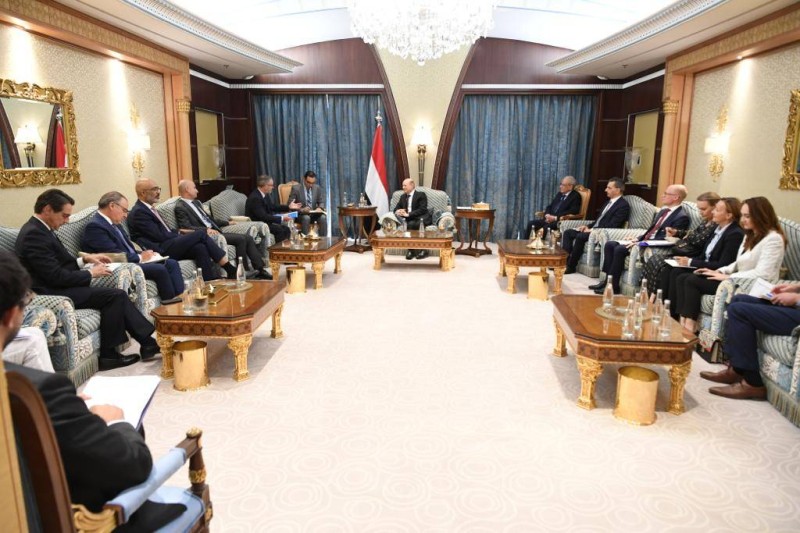 وعرض العليمي خلال لقائه اليوم رئيس بعثة الاتحاد الأوروبي غابرييل مونويرا فينيالس وسفراء وممثلين دبلوماسيين عن 17 دولة أوروبية الأوضاع على الساحة اليمنية، بما في ذلك الإصلاحات المؤسسية والخدمية التي يقودها المجلس والحكومة بدعم من السعودية والإمارات وجهود إحلال السلام في البلاد.
