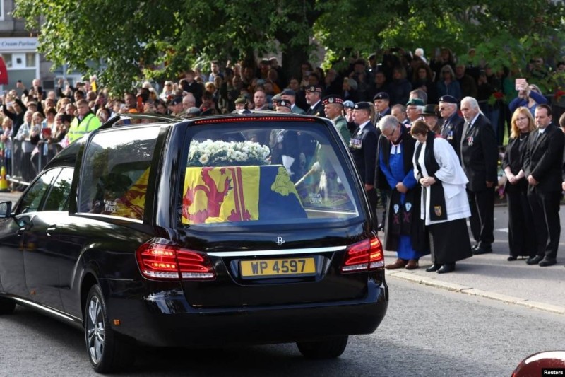 ومن المقرر أن يتوقف الموكب أولاً في بالاتر البلدة القريبة من القصر، ثم في أبردين وداندي قبل الوصول إلى إدنبره، حيث يوضع النعش ليلاً في قاعة العرش في قصر هوليرود هاوس، المقر الرسمي للعائلة الملكية في اسكتلندا.