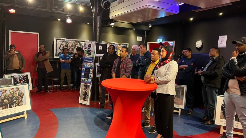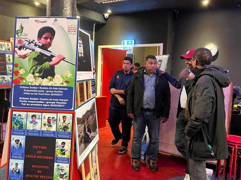 لليوم الثاني على التوالي يواصل المركز الهولندي بالتعاون مع منظمة "ميون" لحقوق الإنسان عرض صور لجرائم تجنيد الأطفال من قبل مليشيا الحوثي بمدينة هارلم الهولندية.