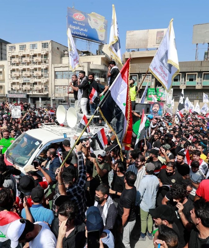 وسط إجراءات أمنية مشددة، تجمع آلاف المتظاهرين العراقيين في ساحة التحرير، اليوم (السبت)، لإحياء الذكرى الثالثة لحركة تشرين التي اندلعت عام 2019، في أرجاء البلاد، وراح ضحيتها مئات القتلى وآلاف الجرحى.