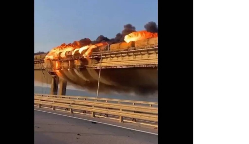 وكانت اللجنة الوطنية الروسية لمكافحة الإرهاب أعلنت تفجير شاحنة على جسر القرم ما أدى إلى اشتعال النيران في عدد من صهاريج الوقود في قطار كان يسير عبر الجسر. وأفادت وسائل إعلام روسية بأن الحريق نتج عن تفجير سيارة مفخخة.