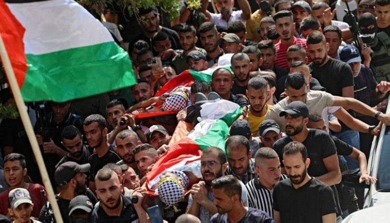 شيع آلاف الفلسطينيين، اليوم (الجمعة)، جثماني فلسطينيين قتلا بنيران القوات الإسرائيلية في مدينة نابلس شمال الضفة الغربية.