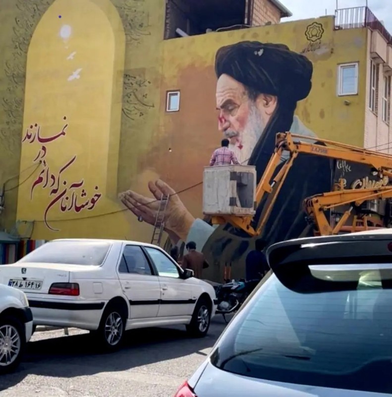 وأظهرت مئات الصور على مواقع التواصل الاجتماعي خلال الأسابيع الماضية، لوحات جدارية للمرشد علي خامنئي وسلفه الخميني، مطلية باللون الأحمر في مدينة قم المقدّسة.
