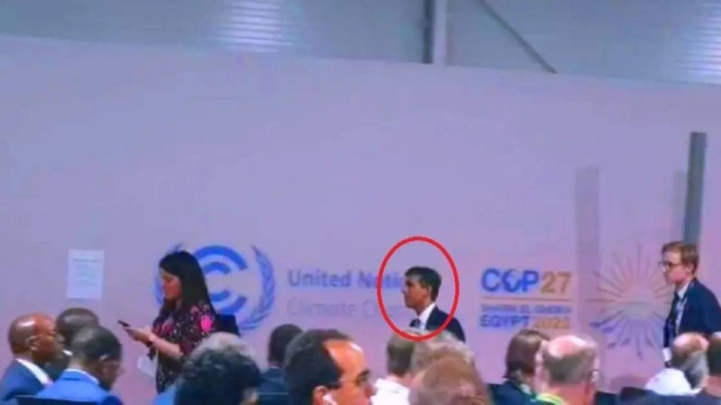 كشفت صحيفة «الصن» البريطانية، سبب «الخروج المستعجل» لرئيس الوزراء البريطاني الجديد ريشي سوناك، من قمة المناخ «كوب 27» في شرم الشيخ يوم أمس (الإثنين). وقال الصحفي البريطاني «Harry Cole» المختص في الشؤون السياسية: إن ما حدث من خروج سوناك ومن معه من القاعة لم تكن له أي علاقة بطارئ ما، بحسب تغريدة كتبها في تويتر.