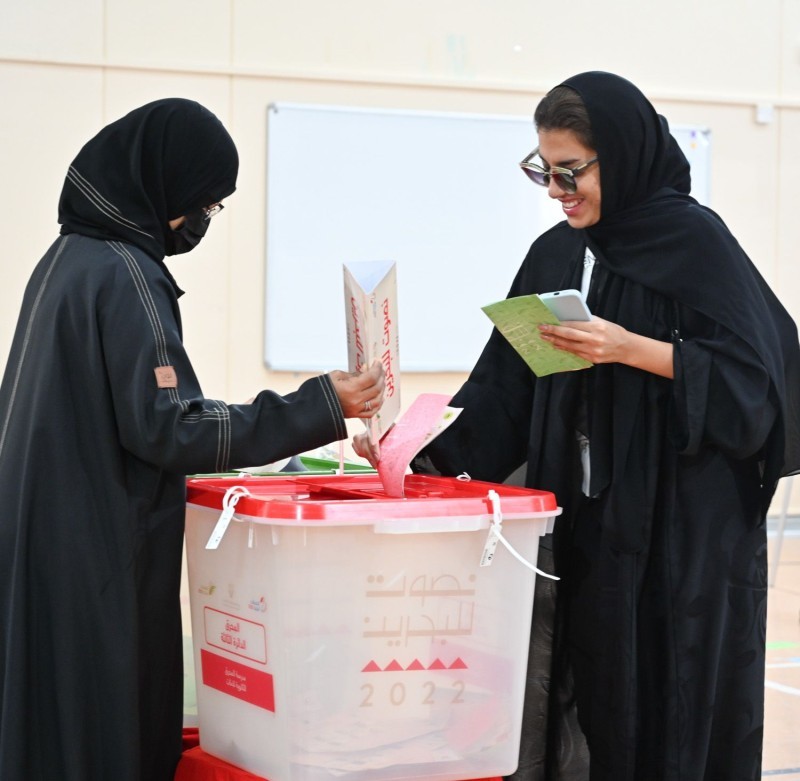 وكان وزير العدل والشؤون الإسلامية والأوقاف رئيس اللجنة العليا للإشراف على سلامة الانتخابات البحرينية نواف بن محمد المعاودة قال لـ«عكاظ» إن نسبة المشاركة في انتخابات 2022 بلغت 73% وهي أعلى نسبة مشاركة منذ عام 2002.