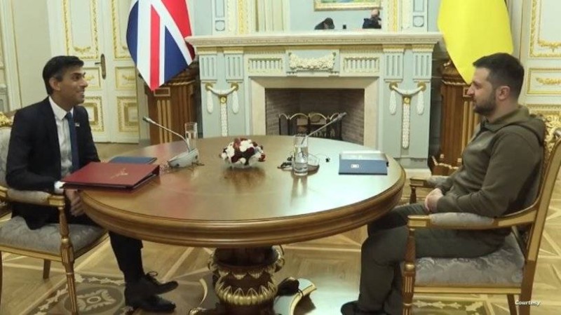 وكتب زيلينسكي على تيلغرام: «منذ الأيام الأولى للحرب، كانت أوكرانيا والمملكة المتحدة الحليفين الأقوى»، فيما أعلن داونينغ ستريت أن سوناك توجه إلى كييف بهدف تأكيد دعم المملكة المتحدة لأوكرانيا.