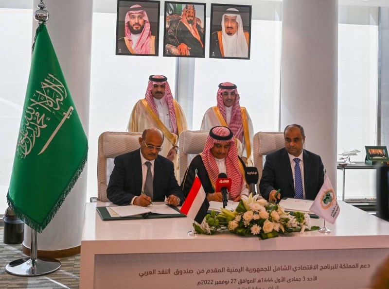 تحت رعاية السعودية، وقعت حكومة الجمهورية اليمنية، وصندوق النقد العربي (كجهة فنية مساندة)، اليوم (الأحد)، اتفاقاً لدعم الإصلاح الاقتصادي والمالي والنقدي الشامل في اليمن بمبلغ مليار دولار أمريكي، خلال الفترة (2022-2025).