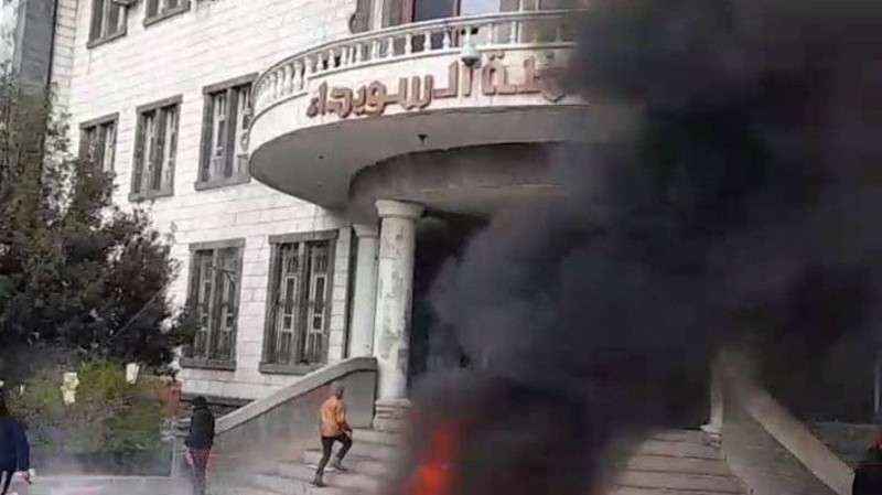 النار مشتعلة في أجزاء من مبنى محافظة السويداء
