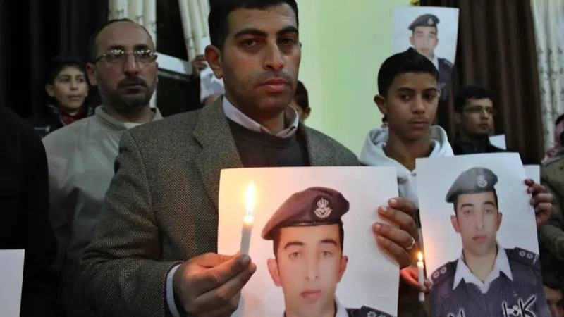 وكانت طائرة الطيار الأردني معاذ الكساسبة الحربية من نوع (إف -16) قد سقطت أثناء أدائه مهمة عسكرية على مواقع التنظيم الإرهابي في محافظة الرقة شمال سورية، ليقع في 24 ديسمبر 2014 أسيراً بيد الإرهابيين.