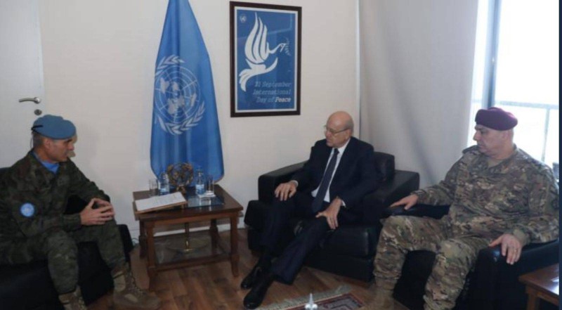 ميقاتي وقائد الجيش في زيارة للجنرال أرولدو لاثارو في الناقورة.