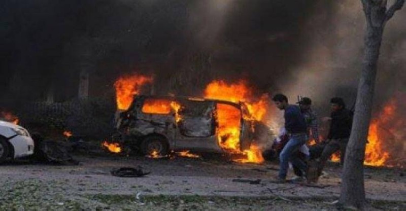 سيارة تحترق إثر انفجارها