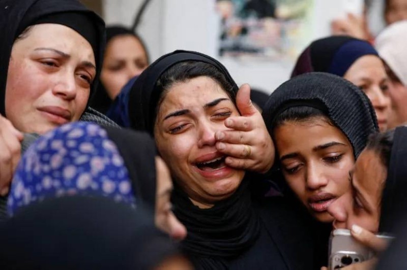 فلسطينيات يبكين مقتل طفل في الضفة الغربية المحتلة.