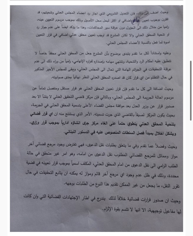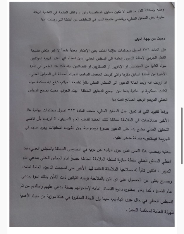 من جهته، أصدر وزير العدل في حكومة تصريف الأعمال هنري الخوري بيانًا لفت فيه إلى أن وسائل الإعلام تتداول مقتطفات من قرار صادر عن المحقق العدلي في قضية انفجار مرفأ بيروت. وفي ضوء ما تضمنته تلك المقتطفات، أحال وزير العدل نسخة منها إلى مجلس القضاء الأعلى للاطلاع.