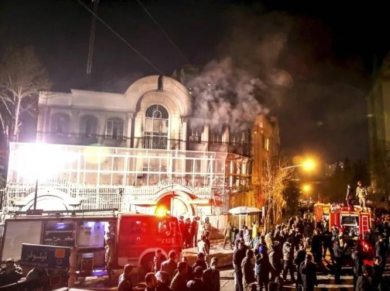 وفي عام 2016، تكرر المشهد الإجرامي الإيراني في الثاني من يناير من ذلك العام، عندما هاجم متظاهرون إيرانيون السفارة السعودية في طهران، وتمكنوا من اقتحام المبنى وسرقة محتوياته، بالتزامن مع الاعتداء على القنصلية السعودية في مدينة مشهد ونهب محتوياتها أيضا وتهديد دبلوماسييها بالقتل، ما أدى إلى إعلان الرياض قطع العلاقات الدبلوماسية مع طهران.
