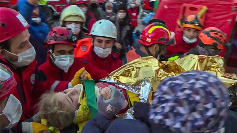 وأفاد صحفيون بأن رجال الإنقاذ سحبوا الفتاة وسط تصفيق الحاضرين في منطقة بايرقلي الأكثر تضررا من الزلزال، وذلك بعد ساعات من انتشال طفلتين على قيد الحياة من تحت أنقاض مبنى منهار في محافظة إزمير.
