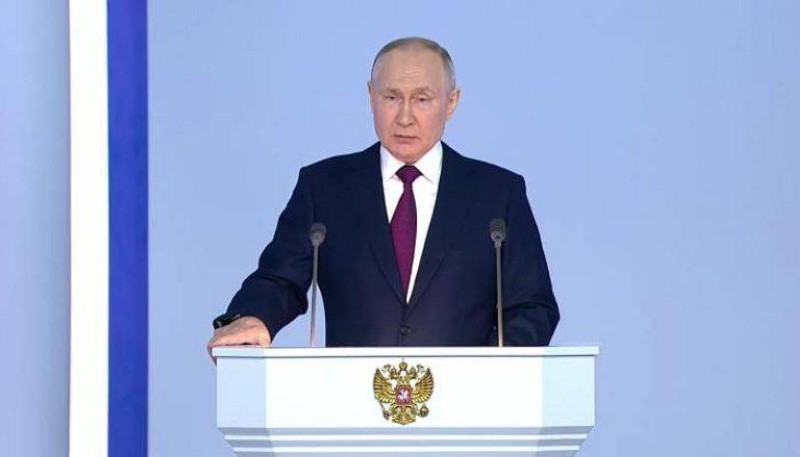 ومع قرب دخول حرب أوكرانيا عامها الثاني، تحدث الرئيس فلاديمير بوتين، مرسلاً رسائل إلى أوكرانيا والغرب والداخل الروسي. وفي خطابه السنوي أمام البرلمان، قال بوتين: «أخاطبكم اليوم في ظل تغييرات جذرية وأحداث تاريخية تحدد مستقبل وطننا وشعبنا». واعتبر أن وعود وكلمات القادة الغربيين كانت «مجرد ذرائع» لكسب الوقت لإعداد أوكرانيا للمواجهة، نذكر كلمات النظام الأوكراني بشأن استعادة الصفة النووية لأوكرانيا. ولفت إلى أنه حينما كانت روسيا صادقة بشأن اتفاقيات مينسك كان الغرب يقوم بما سماه «مسرحية دبلوماسية»، في إشارة لاتفاقيات مينسك. واعتبر أن بلاده كانت منفتحة ومستعدة للحوار، كنا دائماً نسعى للضمانات الأمنية للجميع بمساواة وعدل، لافتاً إلى أن هناك المئات من القواعد العسكرية للناتو حول العالم يكفي النظر إلى الخريطة لنرى ذلك. واتهم الغرب بأنه من بدأ الحرب، ونحن حاولنا ونحاول إيقافها. وأكد أن الغرب كان يلعب بأوراق مخلوطة ويحتفل بخيانته فهو معتاد على البصق على العالم كله.