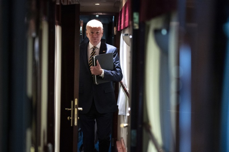 ورافق بايدن خلال رحلة إلى كييف صحفيان أمريكيان، قاما لاحقاً بنشر صور له في القطار، خلال رحلة عودته من كييف إلى وارسو.