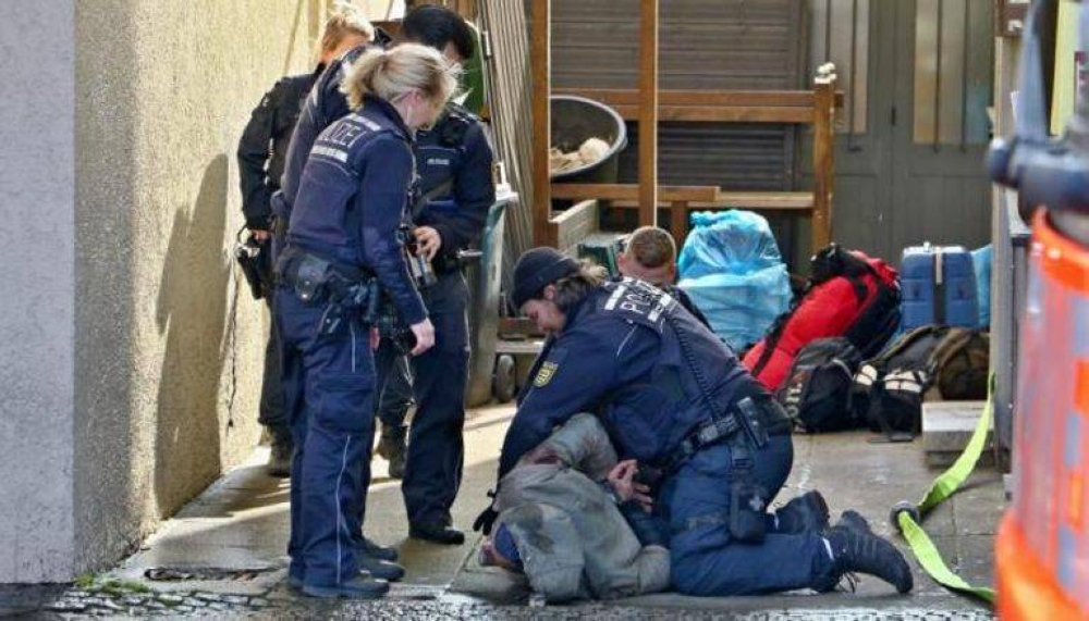 ورصد طاقم إطفاء عائد من إحدى المهمات، دخاناً يتصاعد من أحد المباني في المنطقة، فأبلغ الشرطة واتجه إلى الموقع المحدد. وبحسب صحيفة «بيلد» الألمانية فإن الشرطة وجدت رجلاً يقف أمام مدخل المنزل المشتعل ويحمل سكيناً ليتم اعتقاله، وتتولى فرقة الإطفاء إخماد الحريق وإخراج المصابين، وهما رجل يبلغ من العمر 32 عاماً، وامرأة تبلغ من العمر 53 عاماً، من المنزل.