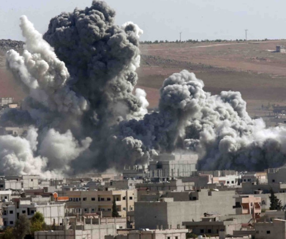 الدخان يتصاعد إثر قصف سابق لمنطقة دير الزور.