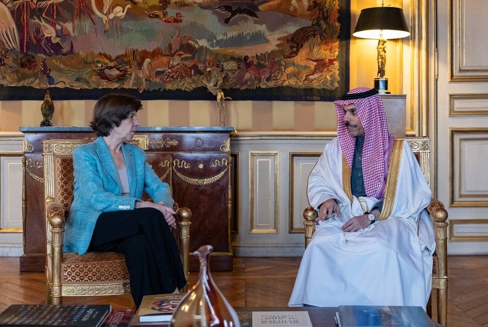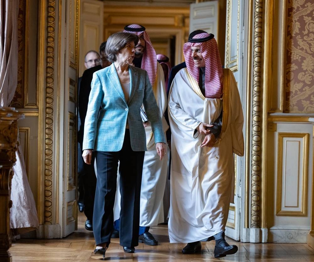 التقى وزير الخارجية الأمير فيصل بن فرحان، وزيرة خارجية الجمهورية الفرنسية كاثرين كولونا، وذلك خلال زيارته الرسمية للعاصمة باريس.