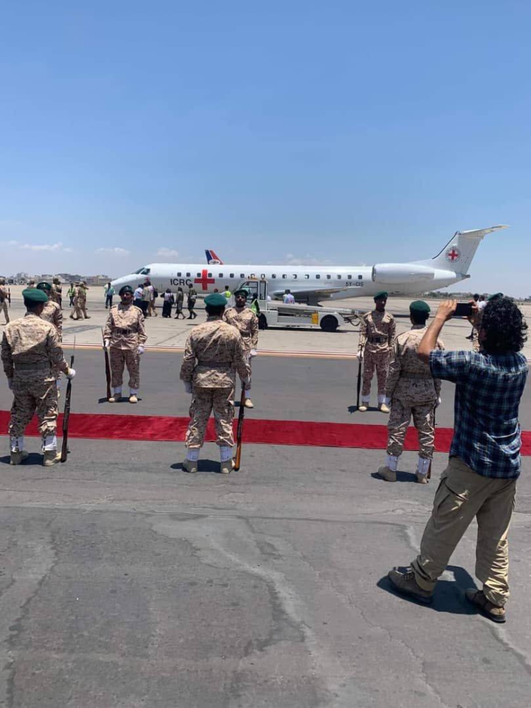 ووصلت إلى مطار عدن أول دفعة من المختطفين والأسرى يتقدمهم القياديان المشمولان بقرار مجلس الأمن الدولي 2216 وزير الدفاع السابق اللواء محمود الصبيحي وشقيق الرئيس اليمني السابق اللواء ناصر منصور هادي.