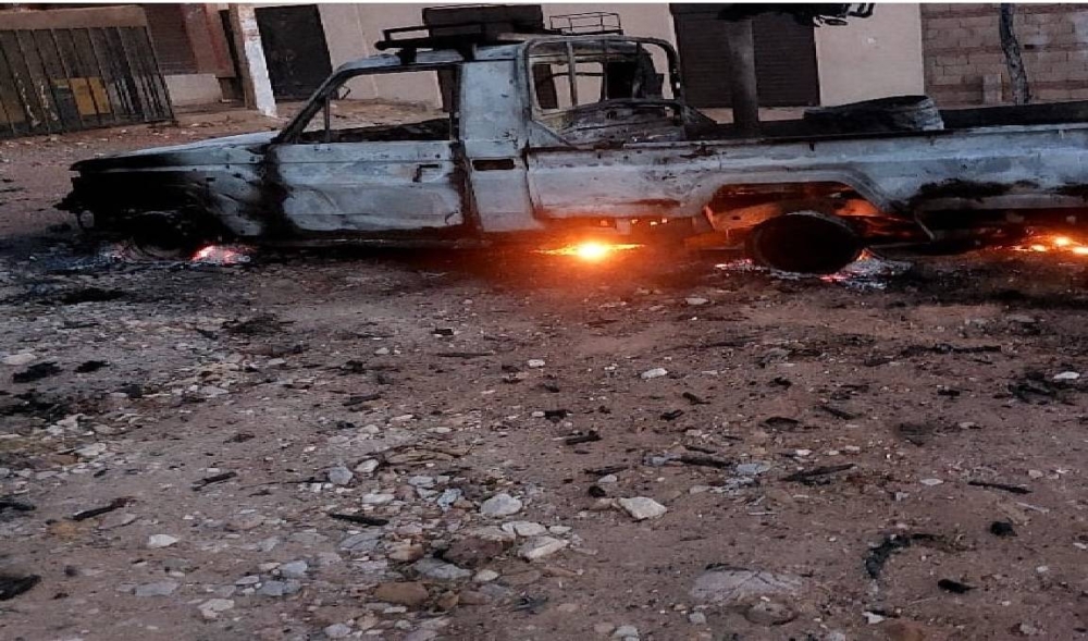 سيارة مدمرة في الاشتباكات الدامية في السودان.