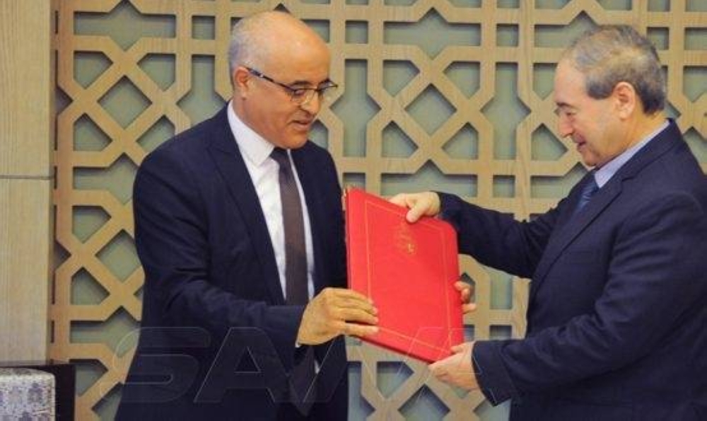 تسلم وزير الخارجية والمغتربين السوري فيصل المقداد، اليوم (الأحد)، نسخة من أوراق اعتماد محمد المهذبي سفيراً مفوضاً فوق العادة لتونس لدى سورية.