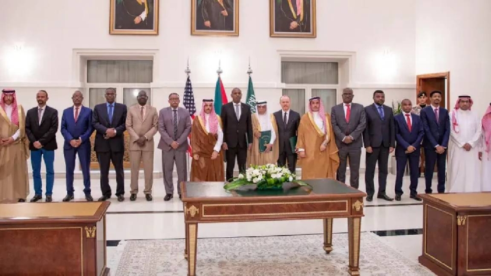 توقيع اتفاق وقف إطلاق النار في جدة. (من حساب وزارة الخارجية السعودية على تويتر)