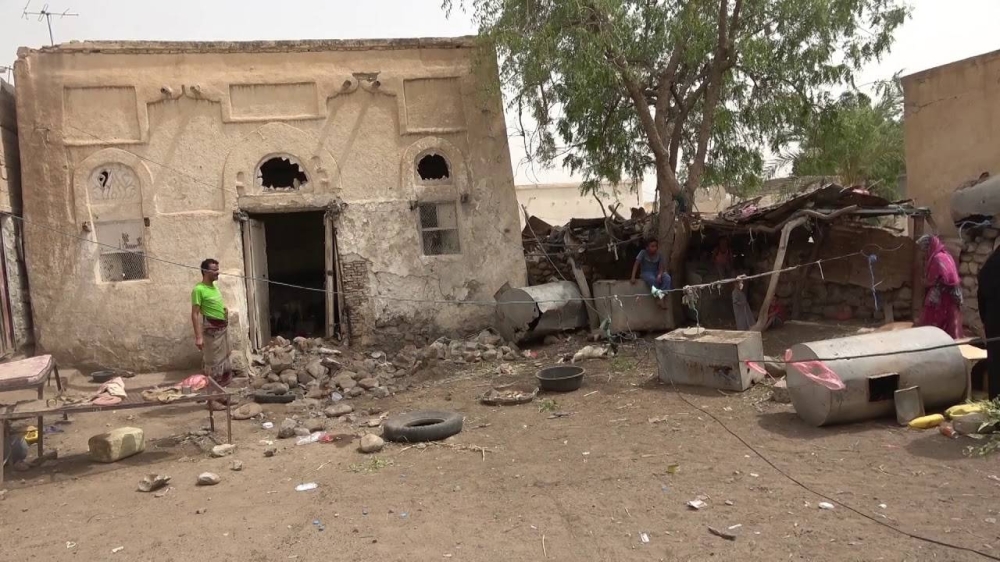 منزل تعرض للقصف الحوثي في مديرية حيس جنوب الحديدة