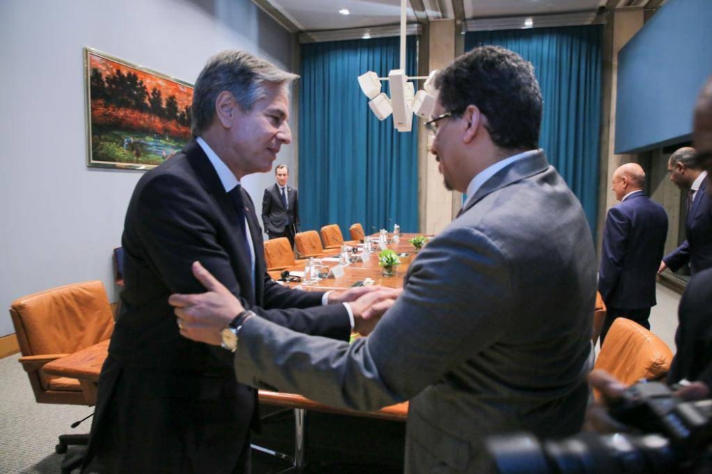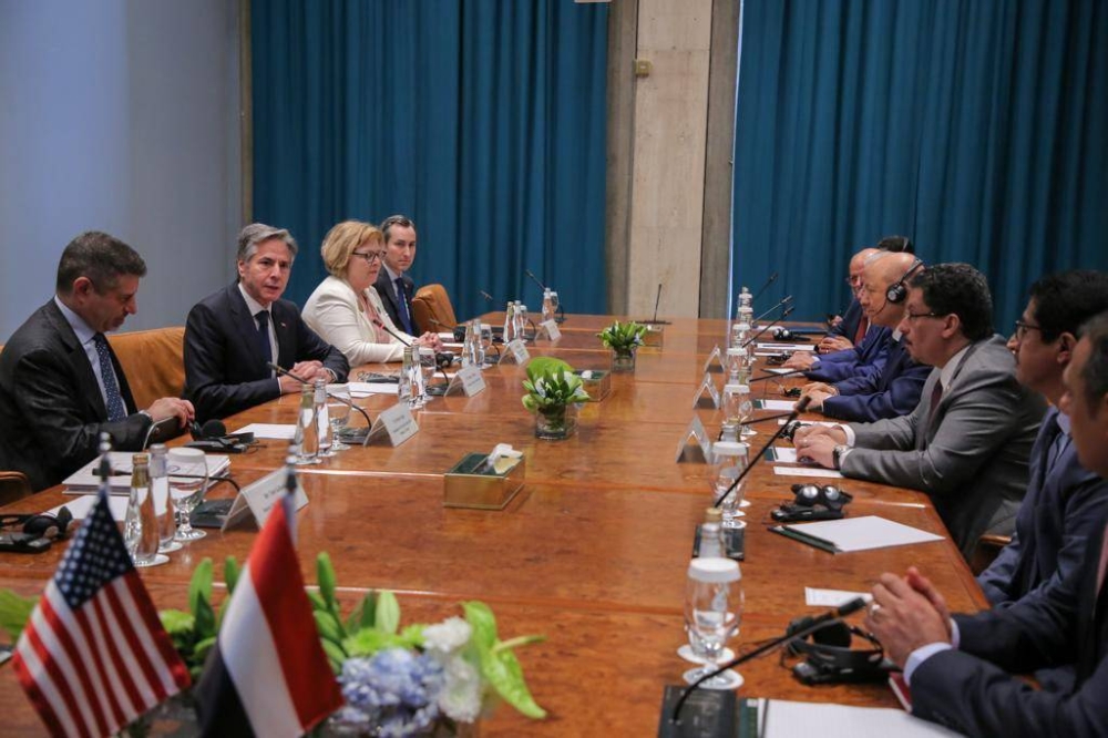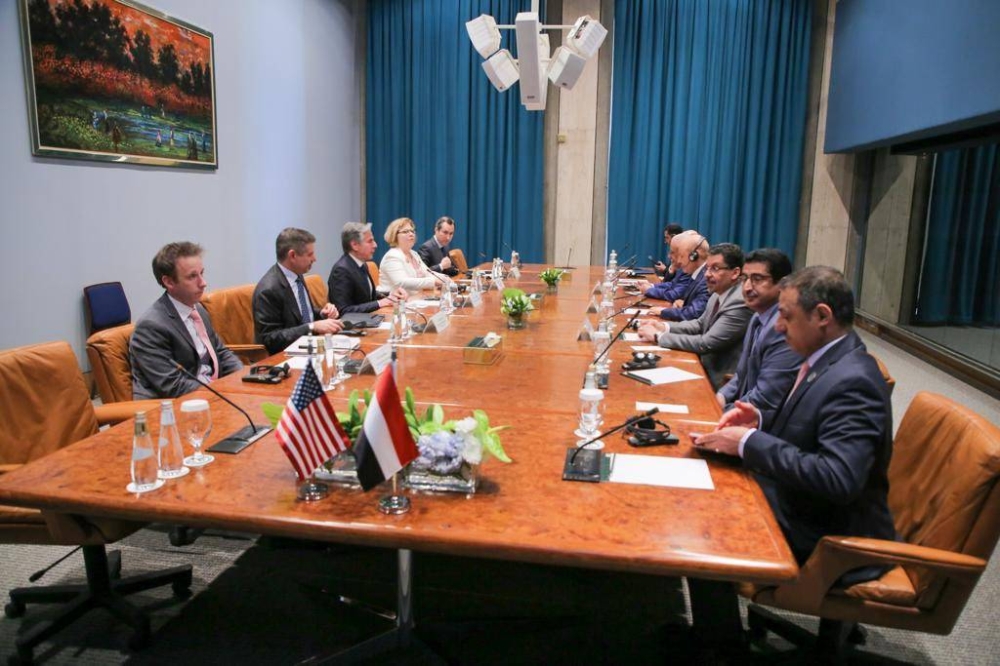 عقد رئيس مجلس القيادة الرئاسي الدكتور رشاد العليمي اليوم (الخميس) جلسة مباحثات مع وزير الخارجية الأمريكي أنتوني بلينكن. وبحسب مصدر في الرئاسة اليمنية تحدث لـ«عكاظ» فإن اللقاء كرس لمناقشة جهود السلام والدور المطلوب من المجتمع الدولي لتحقيق تطلعات الشعب اليمني في استعادة الدولة وإنهاء الانقلاب.