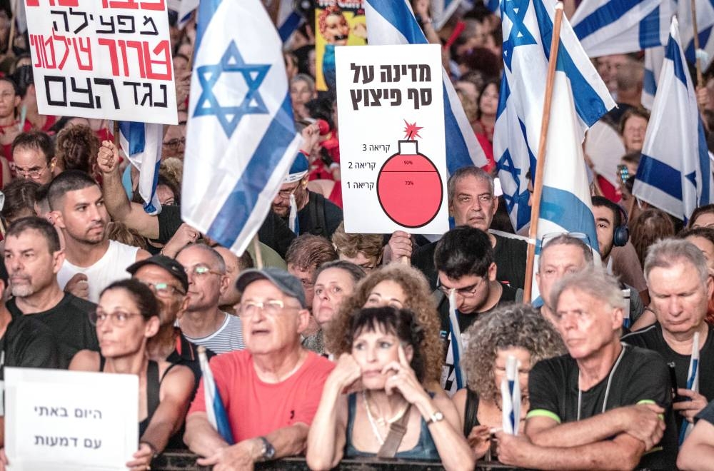 وبحسب منظمي المظاهرات ضد التعديلات القضائية في إسرائيل، أن نحو 550 ألف شخص شاركوا في المظاهرات أمس منهم 240 ألفا في تل أبيب ونحو 100 ألف بالقدس والباقون في مدن حيفا ونتانيا وكفار سابا وبئر السبع والكثير من المناطق الأخرى، وذلك رفضا لما سموه الانقلاب القضائي.