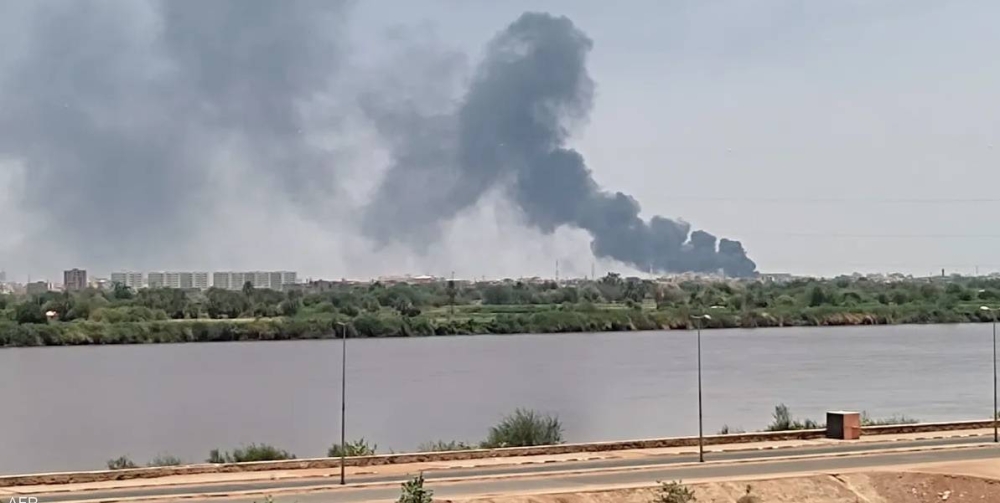 أعمدة الدخان تتصاعد في الخرطوم جراء الاشتباكات بين الجيش وقوات الدعم السريع.